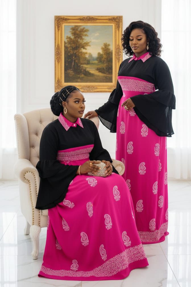 Cette robe est un boubou moderne (ou maxi robe) bicolore alliant élégance traditionnelle et coupes contemporaines. Uniquement sur commande